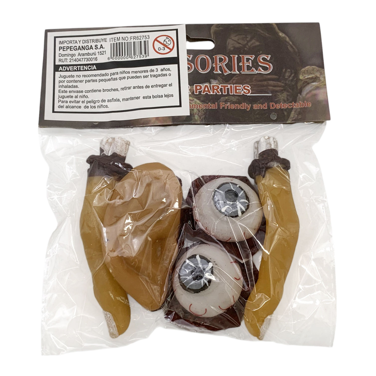 Adorno dedos de goma x2 con oreja y ojos, en bolsa