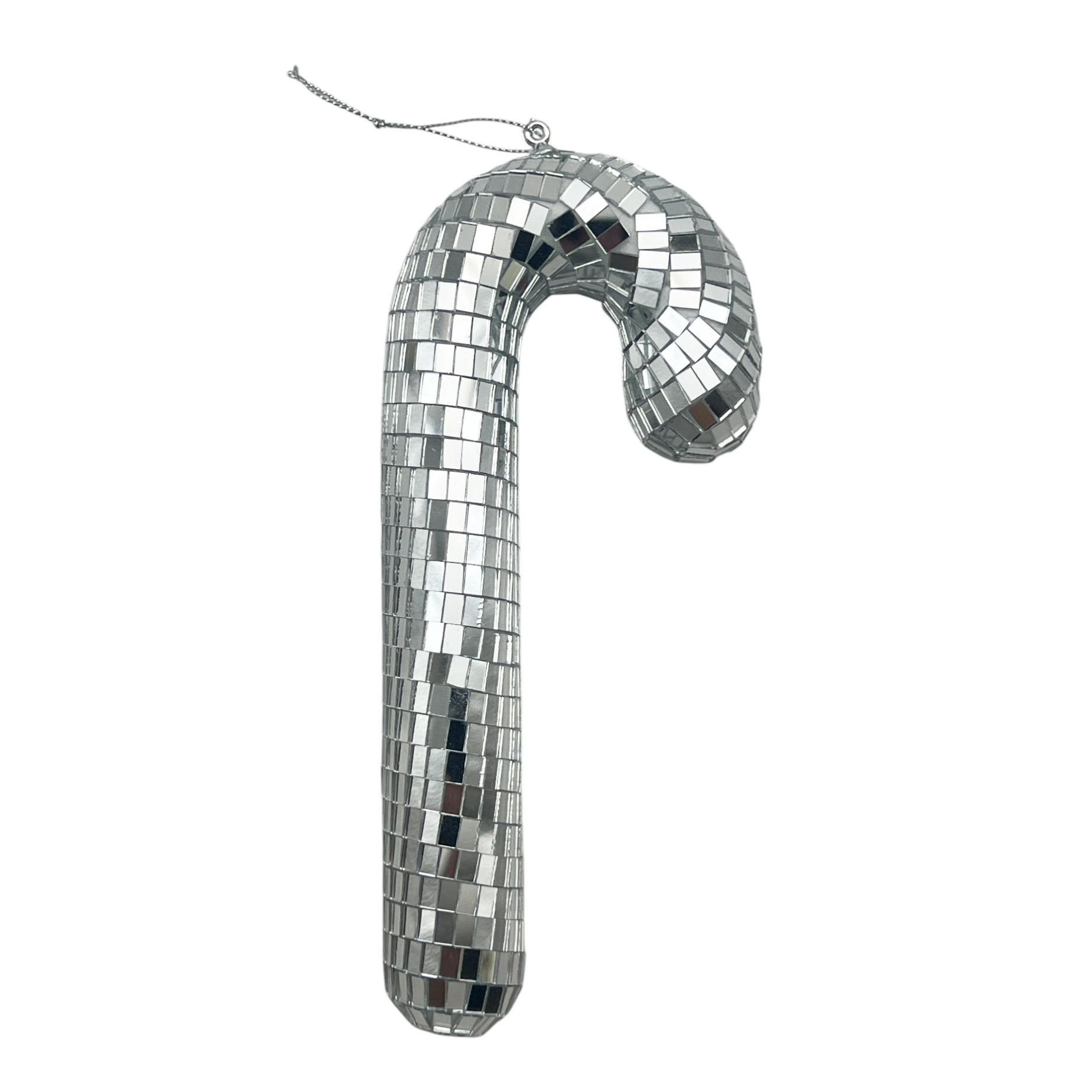 Adorno navideño facetado espejado, bastón, en bolsa