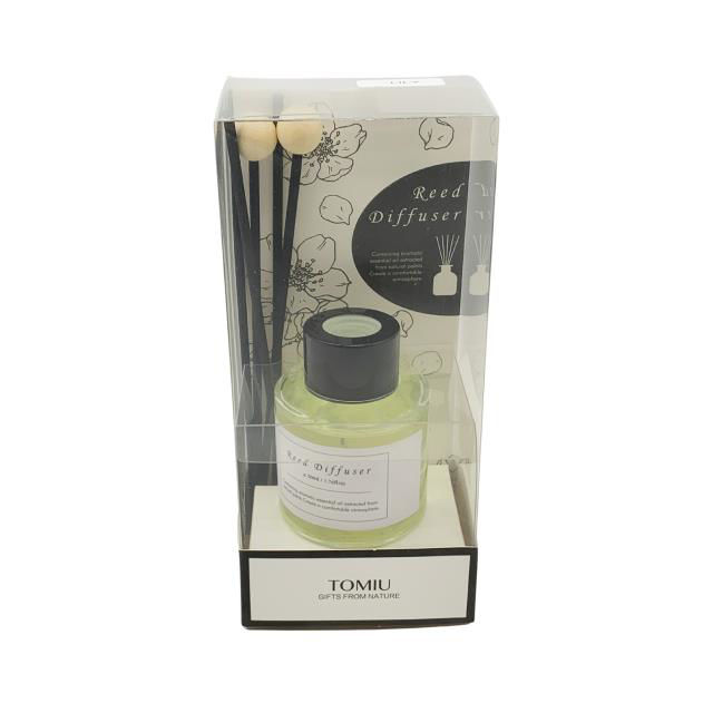 Aromatizador líquido 50ml con 5 palitos, en caja PVC, varios aromas