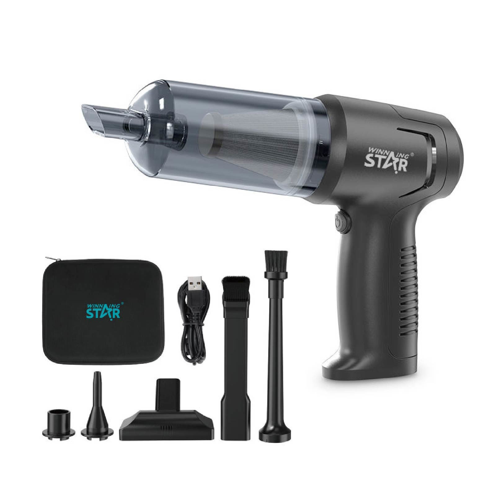 La aspiradora inalámbrica Winning Star 3 en 1 es la solución práctica para mantener tu vehículo siempre limpio y libre de polvo. Con una potencia de 80W y diseño portátil, ofrece función de aspirado, soplado y vacío, ideal para llegar a cada rincón del auto con máxima comodidad.