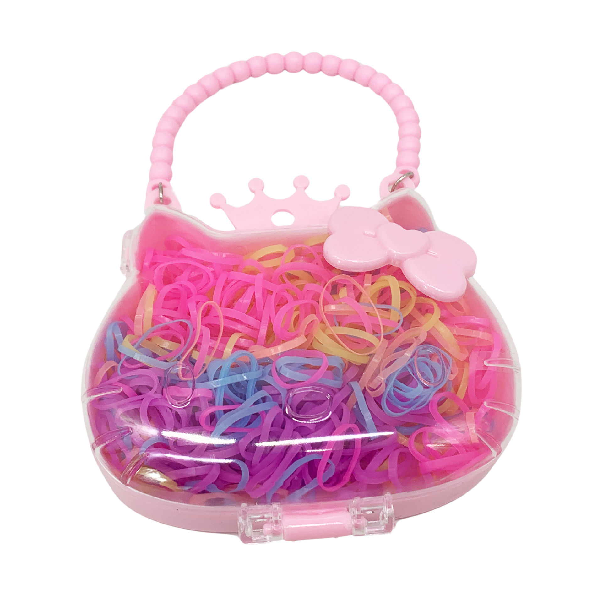 Banditas elásticas x260 unidades para armar pulseras y collares en pote con forma de cartera. PACK x12 potes. Presentación en bolsa. Medidas: 10.5x9cm