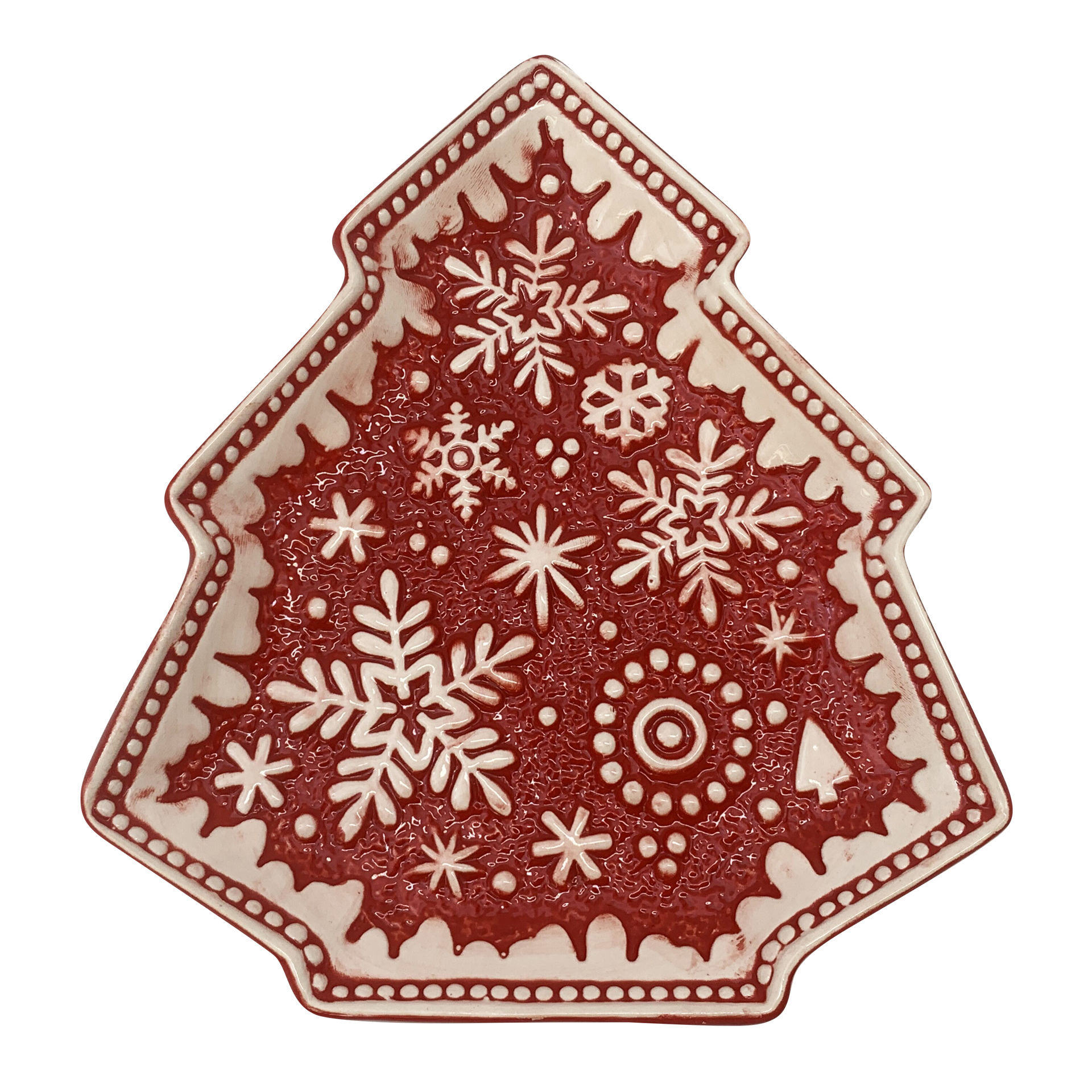 Bandeja de cerámica diseño navideño, en caja 2 colores