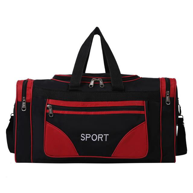 Bolso deportivo. Fabricado en poliéster, 2 bolsillos laterales y uno frontal, con asas y correa. Colores disponibles: negro, azul, rojo. Presentación en bolsa. Medidas: 60x30x28cm.