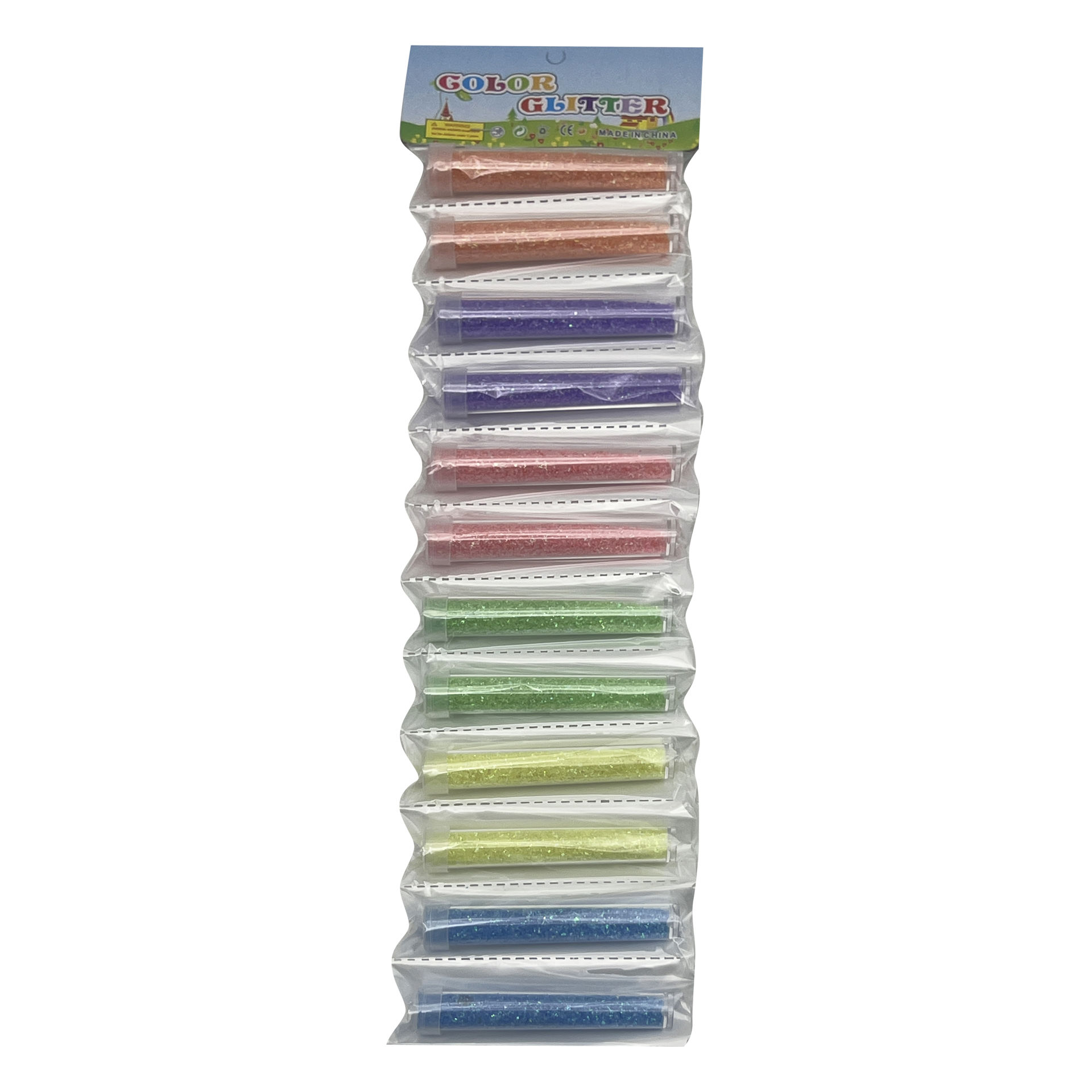 Brillantina fina x12 en tubo, varios colores en bolsa