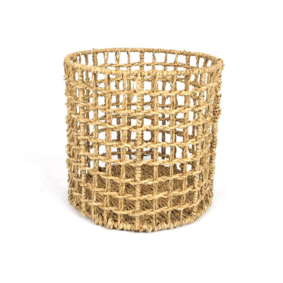 Dale un toque rústico a tu hogar con este cesto calado alto de fibras naturales, junco de agua. Medidas: 26x26cm.
