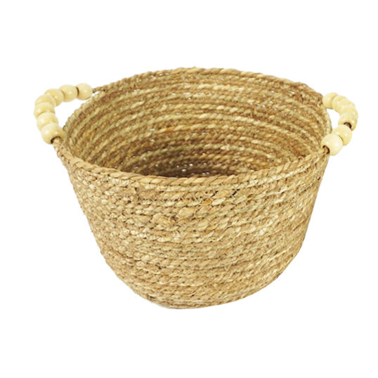 Cesto canasto 2 asas con cuentas, grande, de fibras naturales, junco de agua