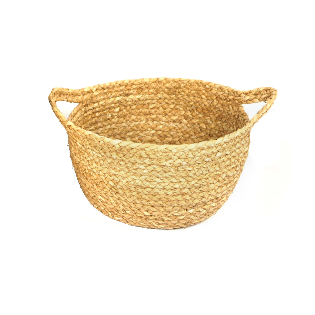 Dale un toque rústico a tu hogar con este cesto con asas de fibras naturales, junco de agua. Medidas: 27x17cm.