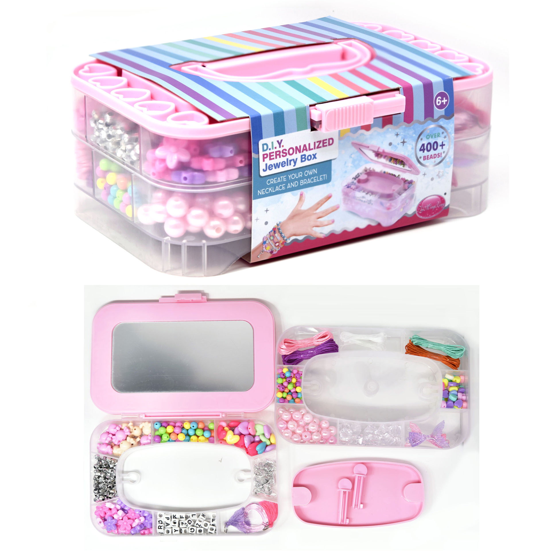 Cuentas para armar pulseras y collares, 400 piezas, en valija de plástico