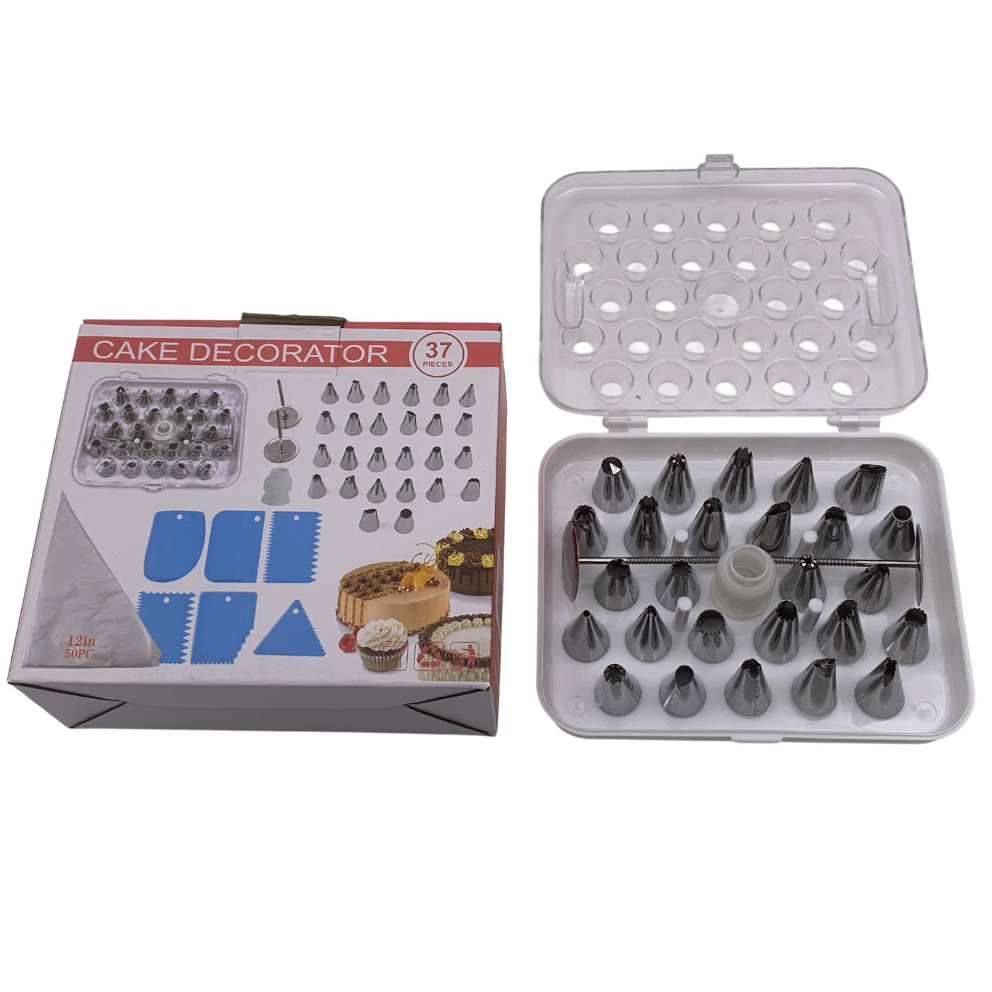 Decorador de torta manga con 25 picos, con estuche de plástico y accesorios, en caja