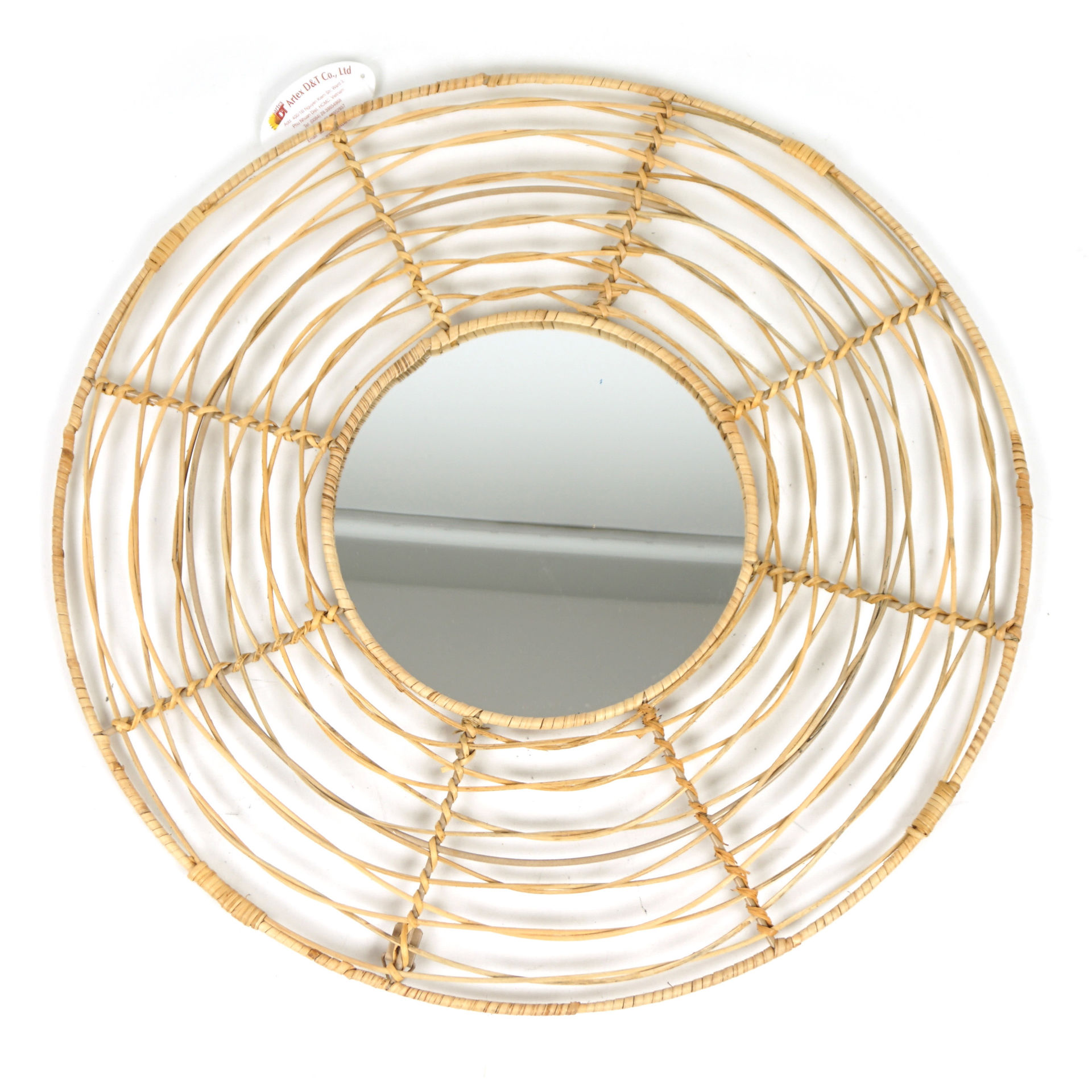Decora tu hogar con estilo y rusticidad con este hermoso espejo de ratán. Medidas: 60cm.