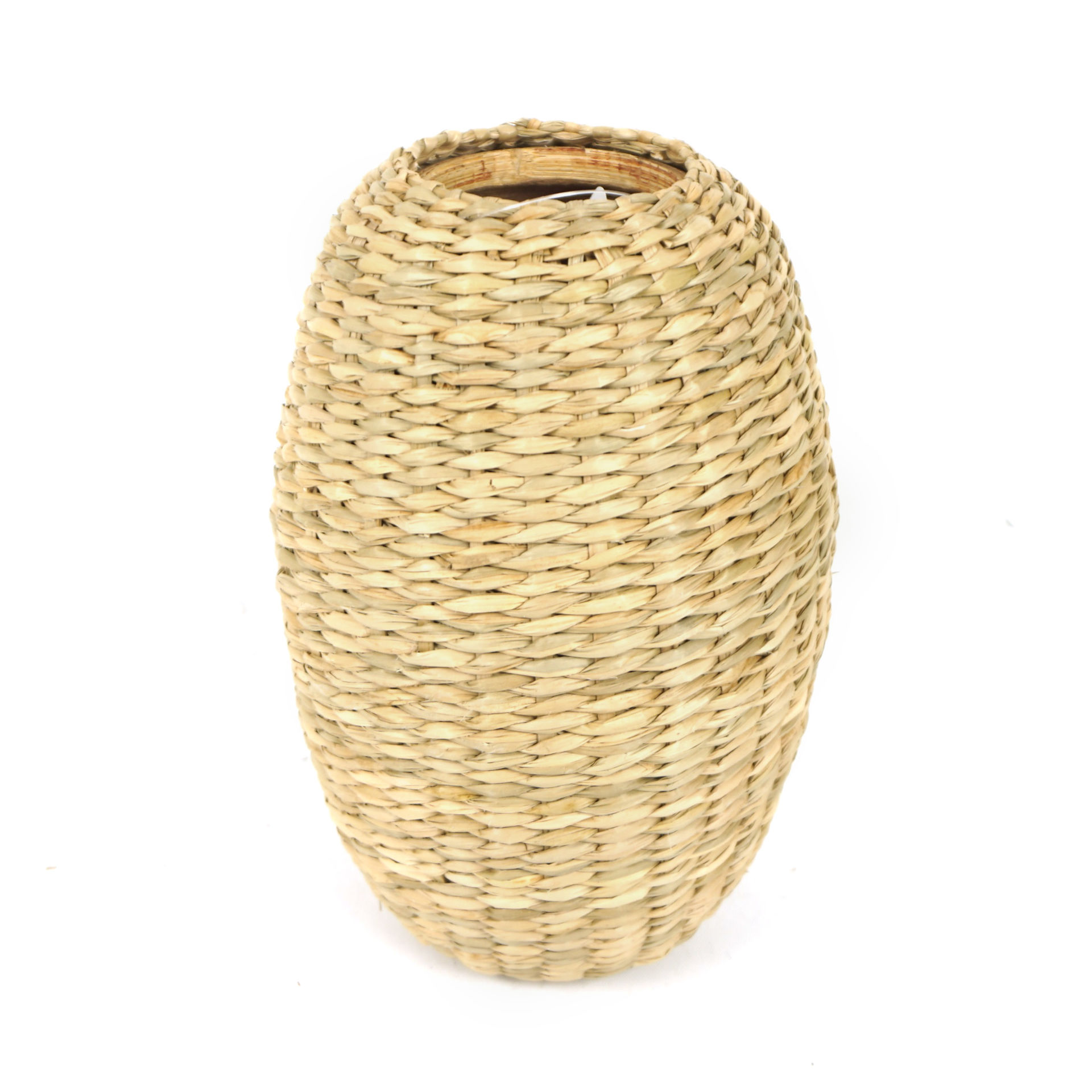 Decora tu hogar con estilo y rusticidad con este hermoso florero de fibras naturales, junco de agua. Medidas: 17x22cm.