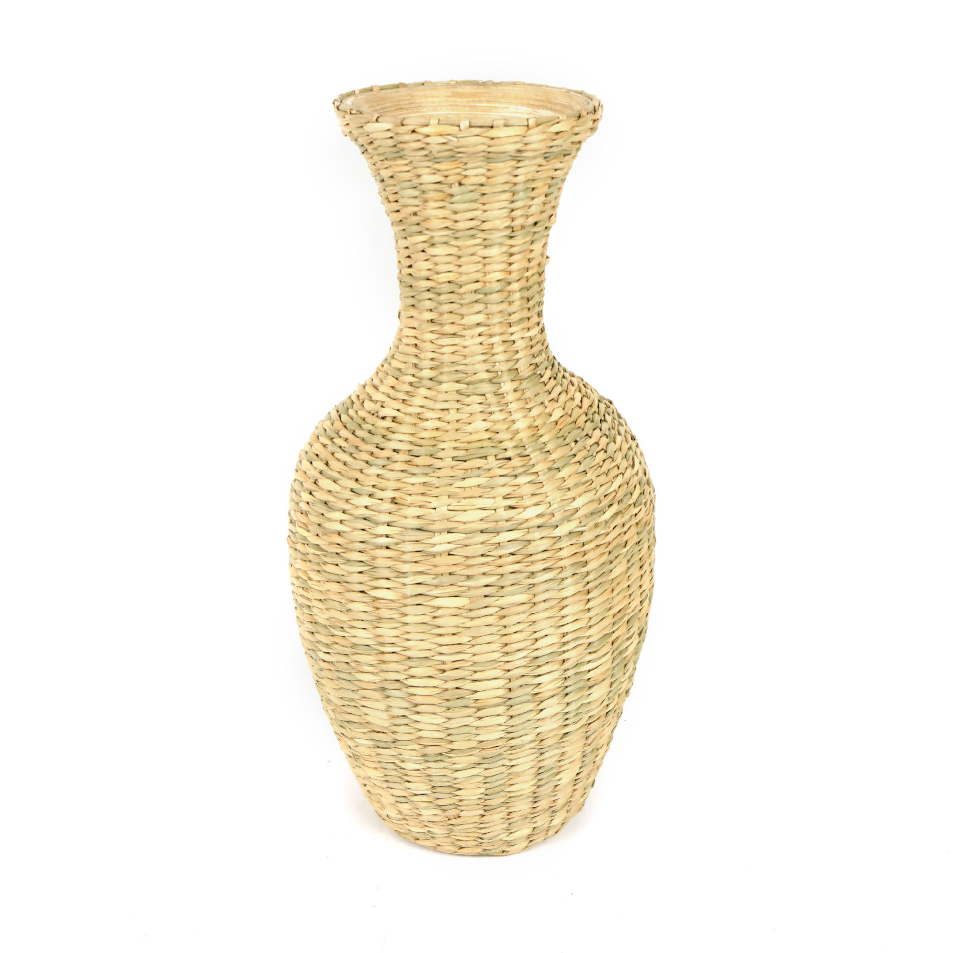 Decora tu hogar con estilo y rusticidad con este hermoso florero cuello largo de fibras naturales, junco de agua. Medidas: 20x41.5cm.