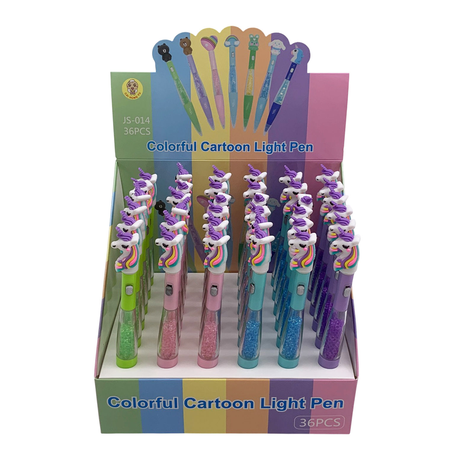 Lapicera de tinta, con luz, diseño unicornios. Tus anotaciones más prolijas y coloridas. CAJA X36