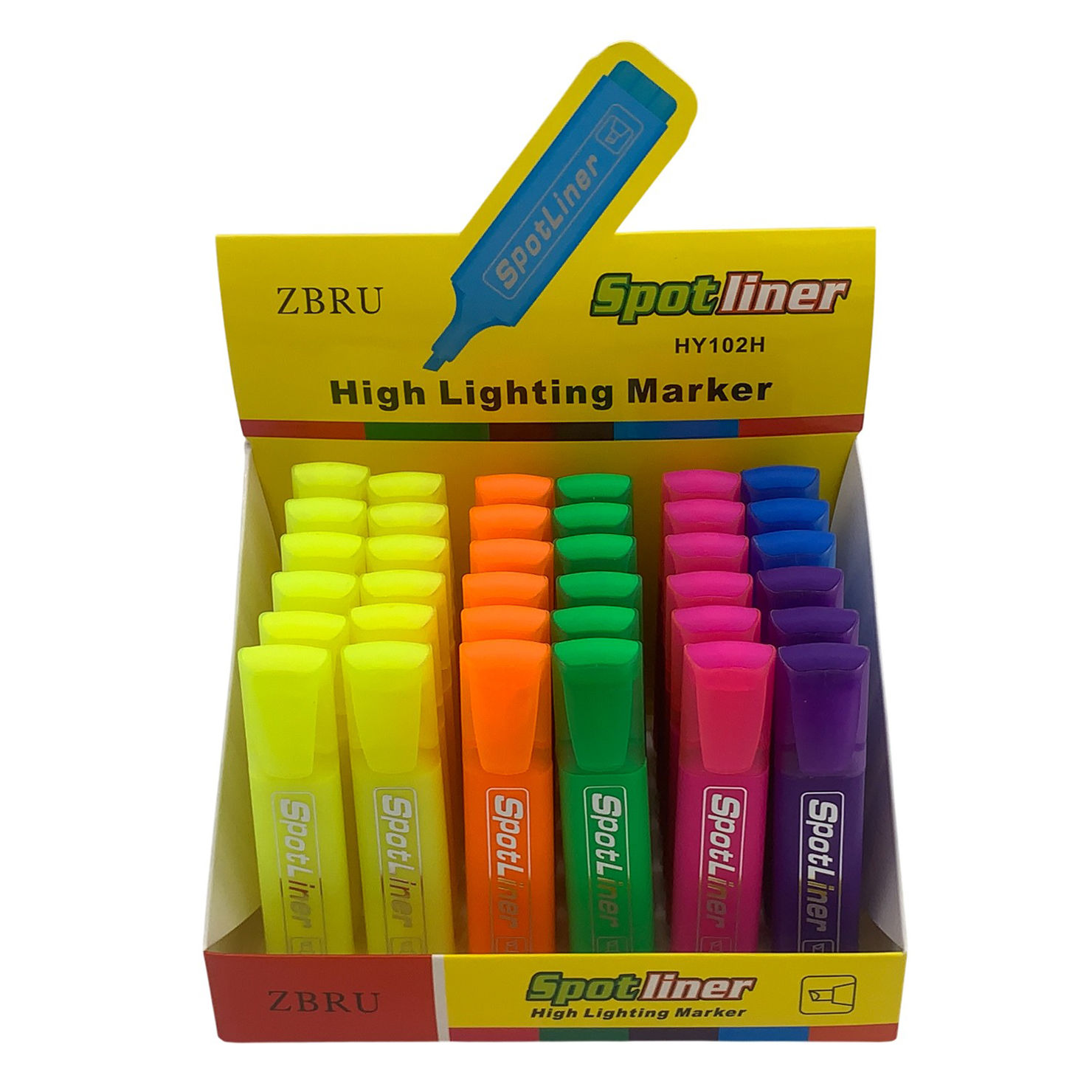 Marcador flúo, punta biselada. CAJA x36 unidades. Varios colores