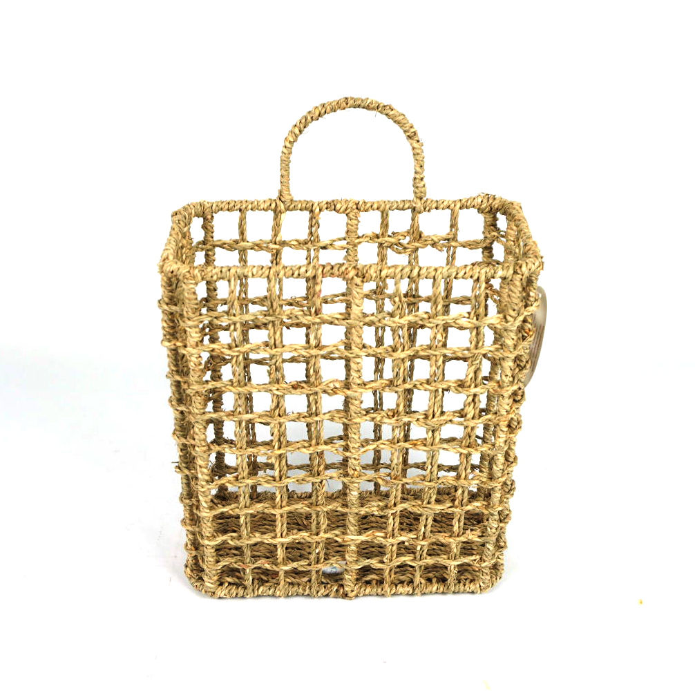 Dale un toque rústico a tu hogar con esta cesta calada de fibras naturales, junco de agua, con asa. Medidas: 25x13x35cm.