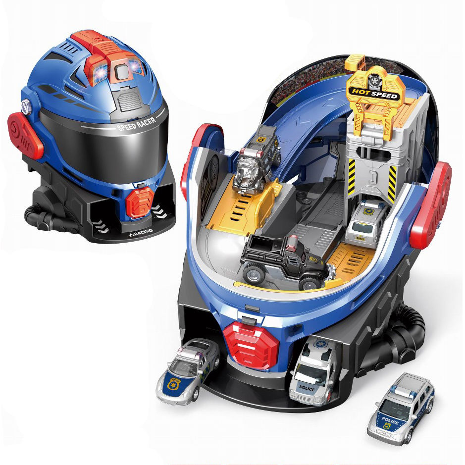 La diversión arranca a toda velocidad. La pista de autos con lanzador con forma de casco es el set perfecto para los pequeños fanáticos de los autos y la velocidad. Su diseño innovador en forma de casco futurista se transforma en una pista de carreras con múltiples funciones, luces y sonidos que hacen del juego una experiencia completamente interactiva.
