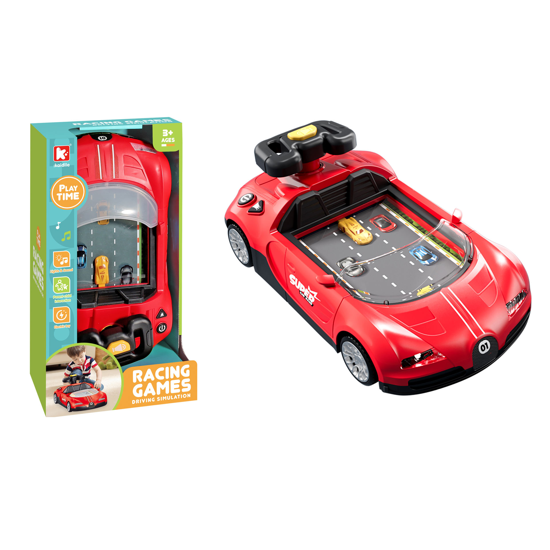Elige tu auto y acelera. La pista de autos con volante es el juguete perfecto para los pequeños amantes de las carreras. Con su volante interactivo, luces y sonidos, este juego de simulación de carreras ofrece horas de entretenimiento mientras desarrolla habilidades de coordinación y motricidad en los niños. Es hora de competir en la pista y sentir la adrenalina.