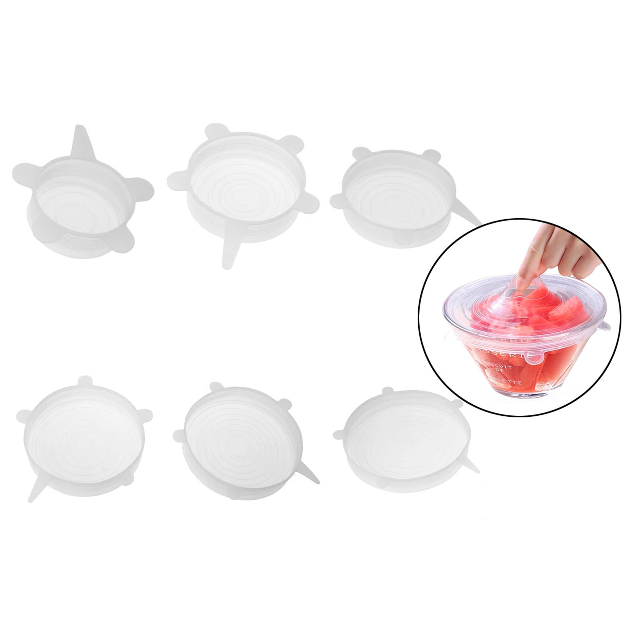 Tapa de silicona vacío x6, distintos tamaños en bolsa varios colores