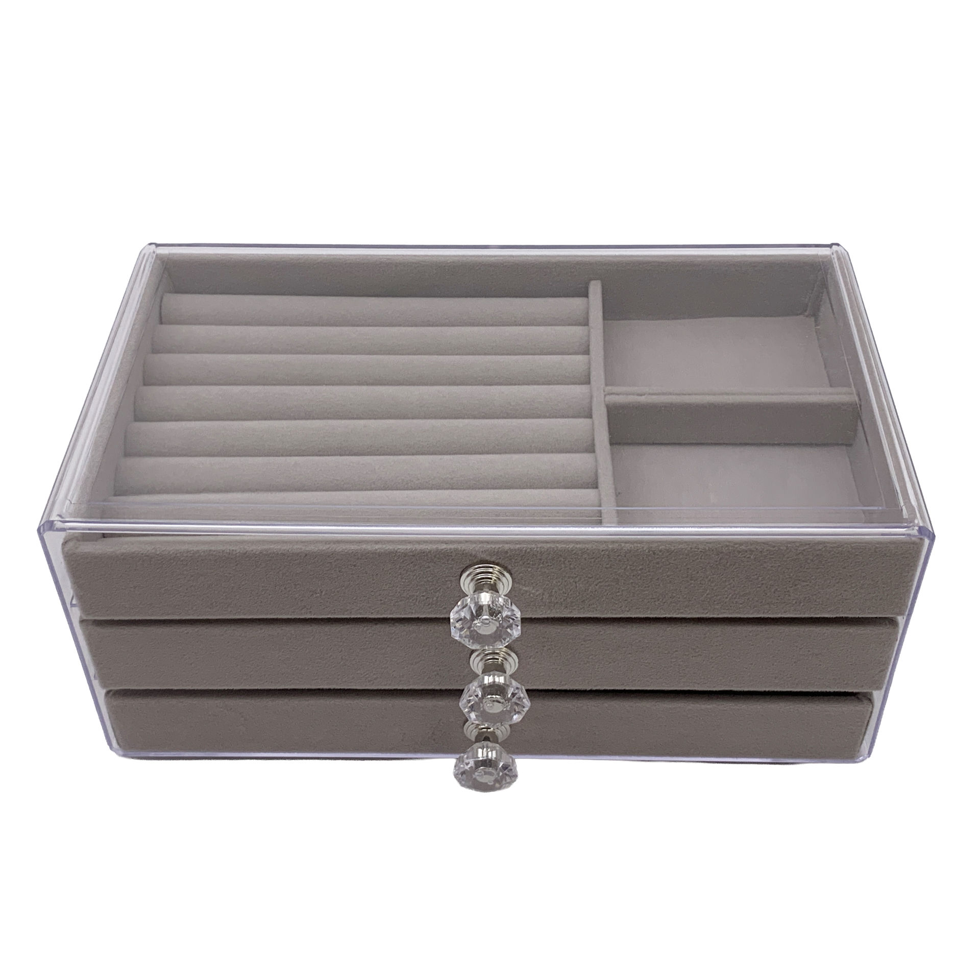 Alhajero de acrílico, 3 cajones con divisiones de fieltro, varios colores