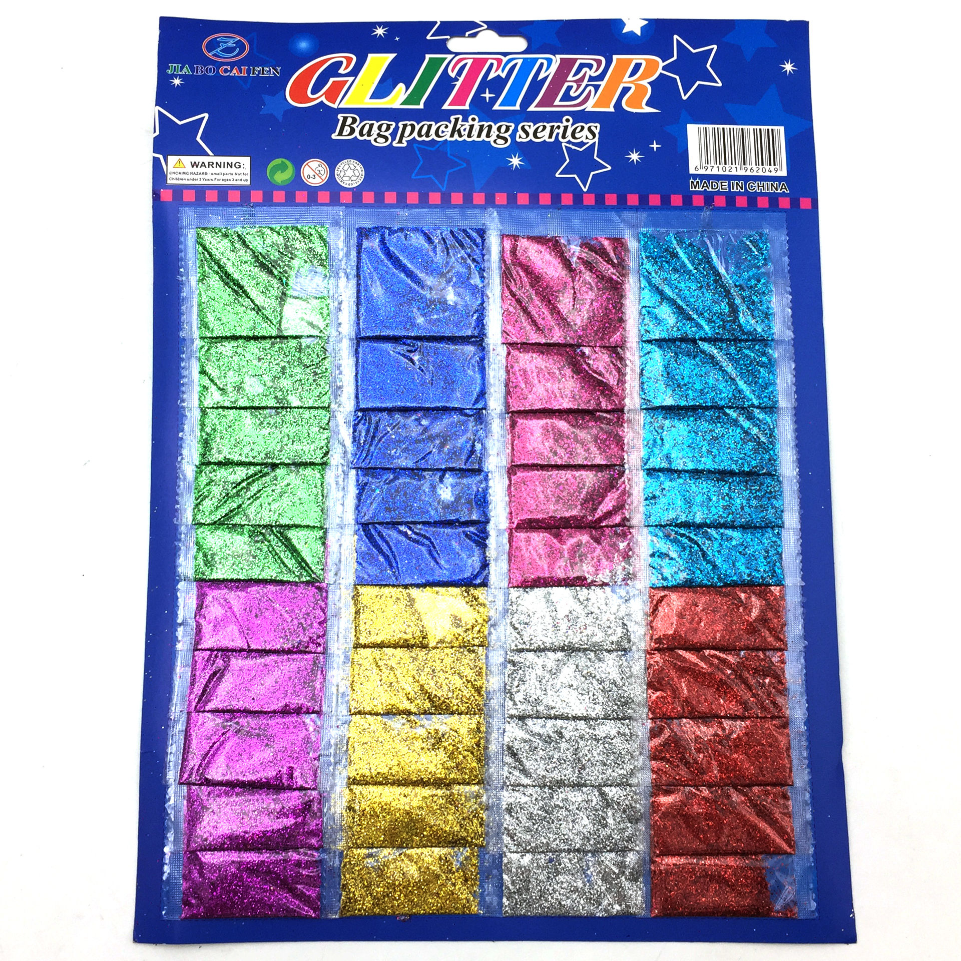 Brillantina fina x40, en bolsita 2g, en cartón, varios colores