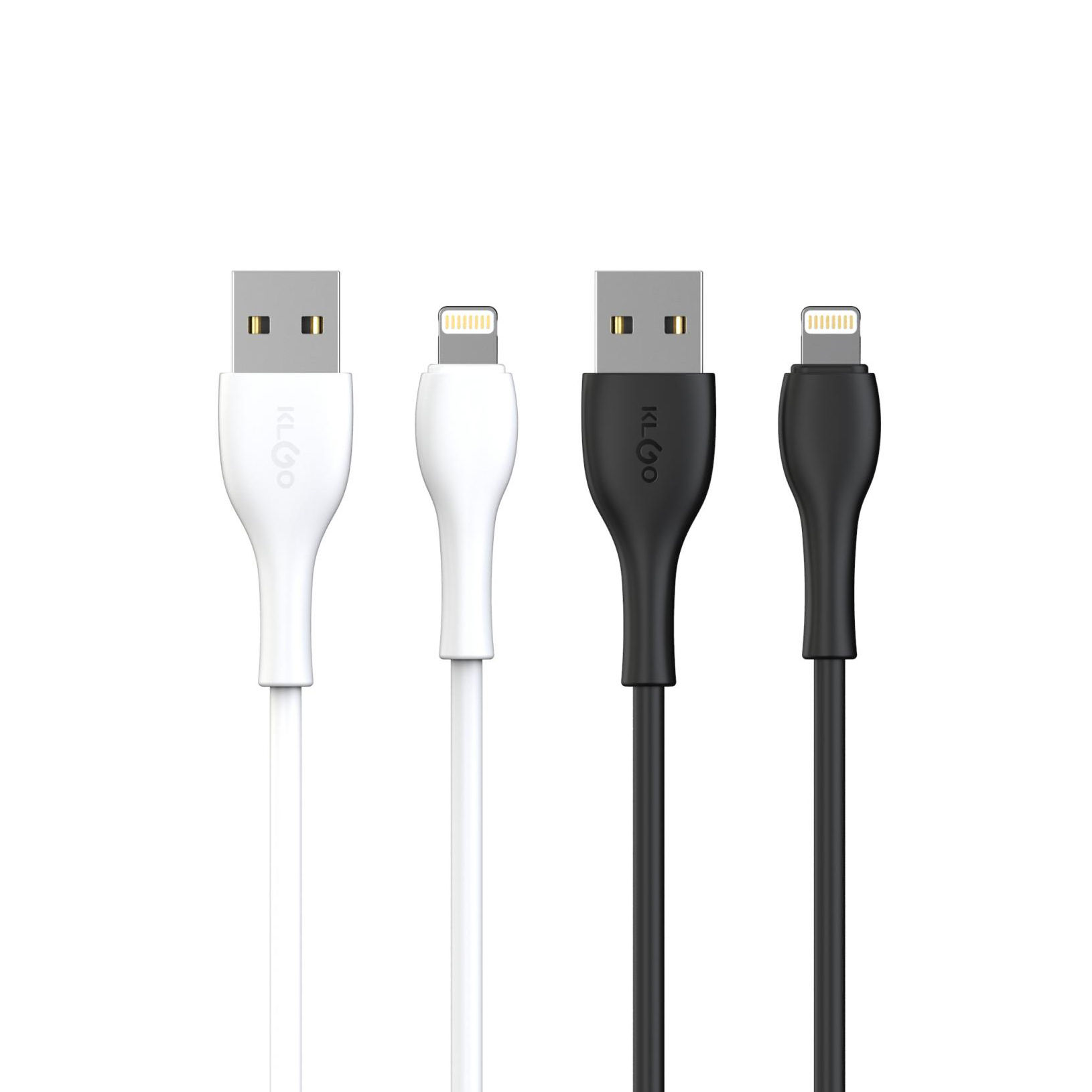 Cable de datos y carga KLGO USB a Lightning. Cable de 1m de largo. Compatible con iPhone. Colores disponibles: blanco, negro. Presentación en caja.