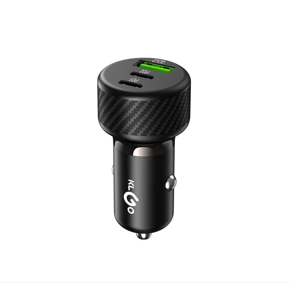 Cargador para auto con 3 entradas, USB-C y USB-A, carga rápida, 120W, KLGO, en caja