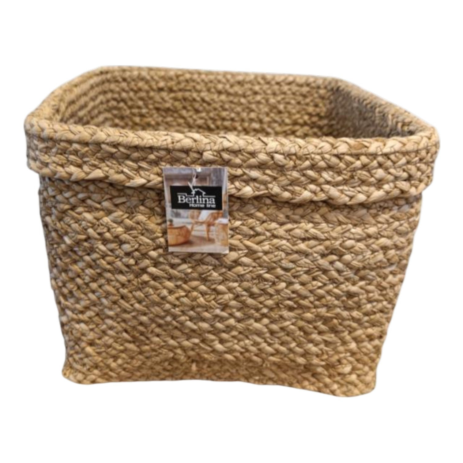 Cesta cuadrada de fibras naturales grande, junco de agua