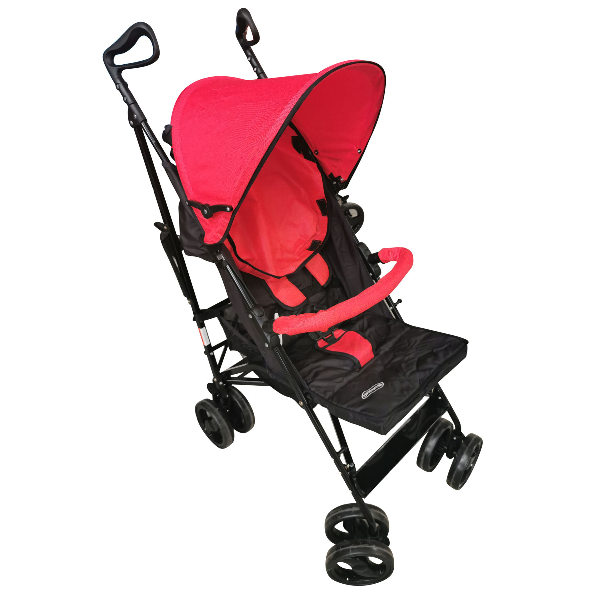 Versátil y práctico coche para bebé tipo paragüitas, es plegable y tiene capota extensible y removible, cinturón de 5 puntas para mayor seguridad, 4 ruedas dobles con freno trasero y un canasto porta objetos de red para guardar lo que gustes.