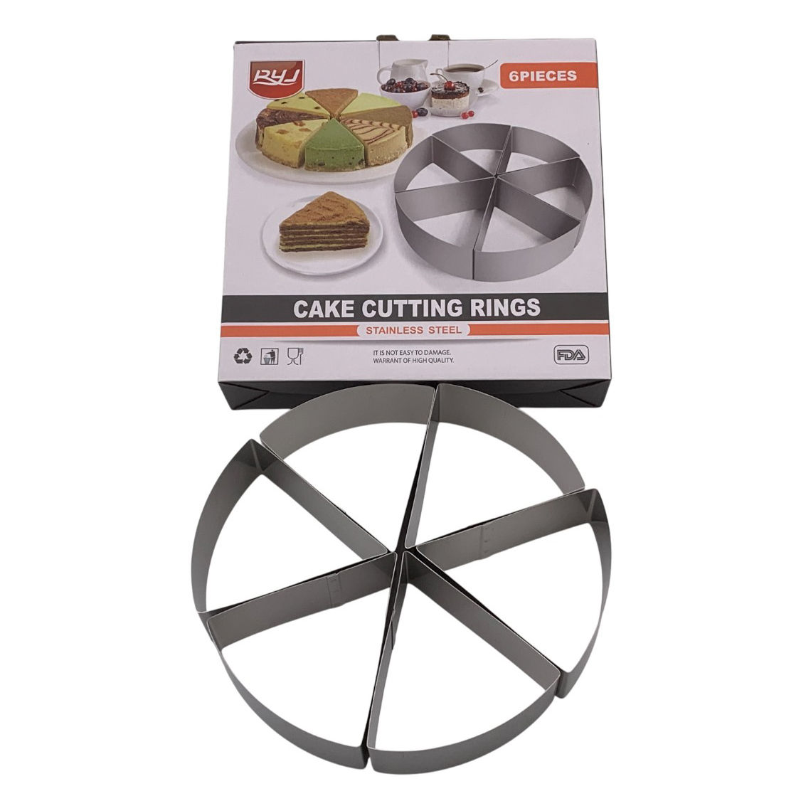 Cortante de metal para porcionar tortas, 6 divisiones, en caja