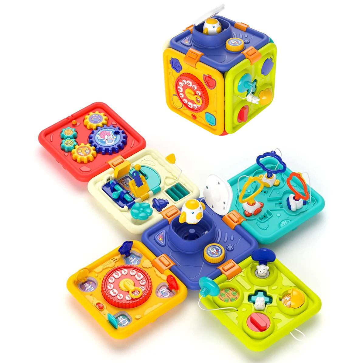 Un juguete didáctico completo para las manos y mentes más curiosas. Este cubo didáctico es diversión garantizada en cada giro, botón y encastre.