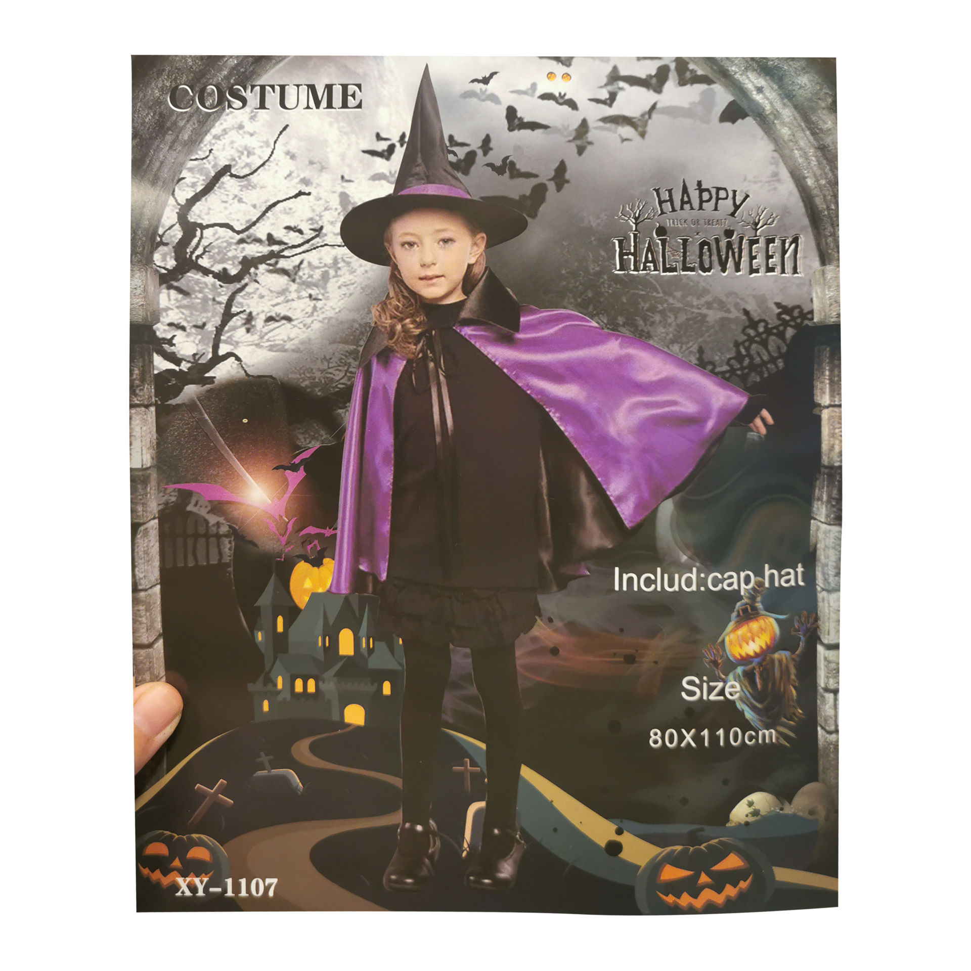 Disfraz de bruja gorro y capa, en bolsa