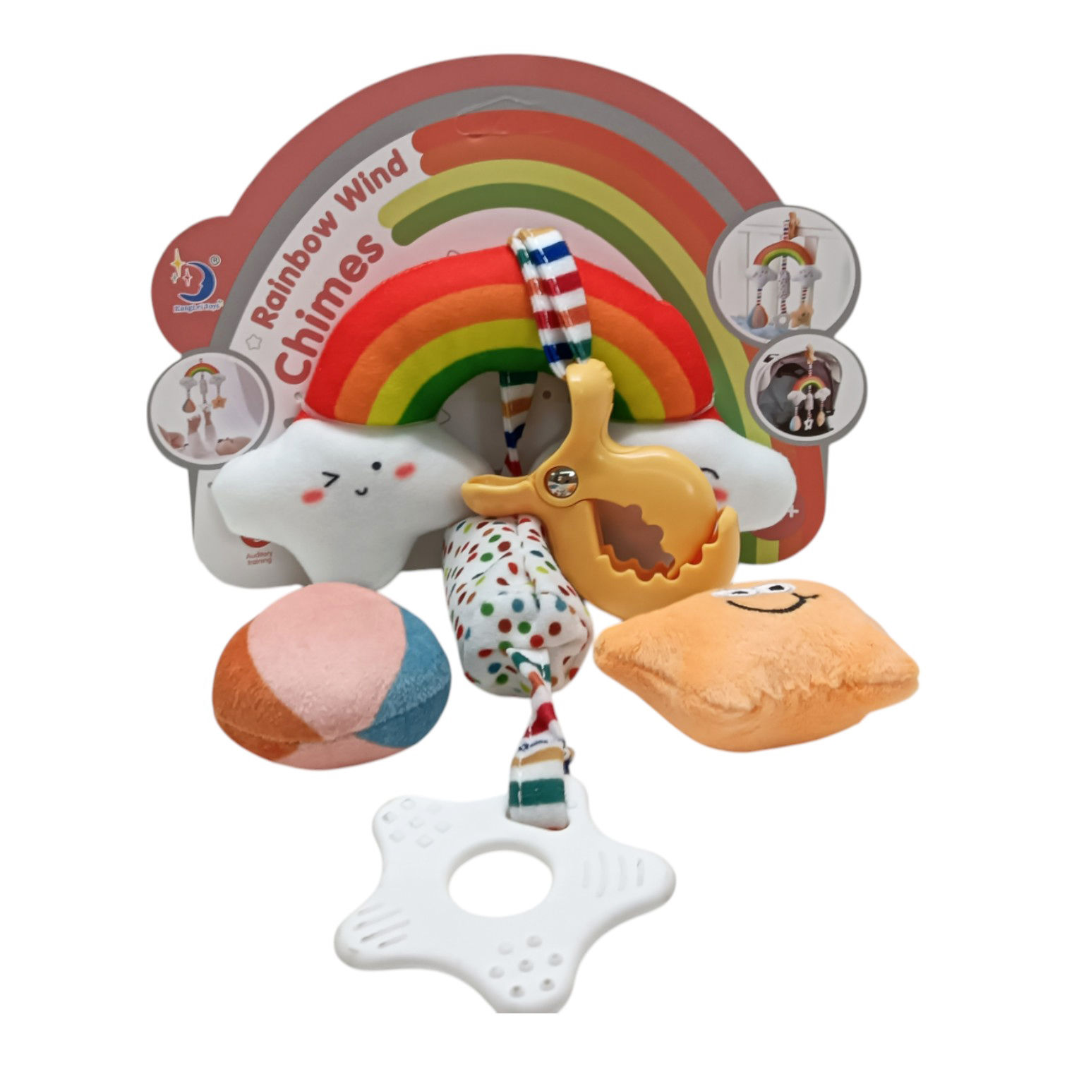 Dormidera de tela con cascabeles, 3 móviles en caja