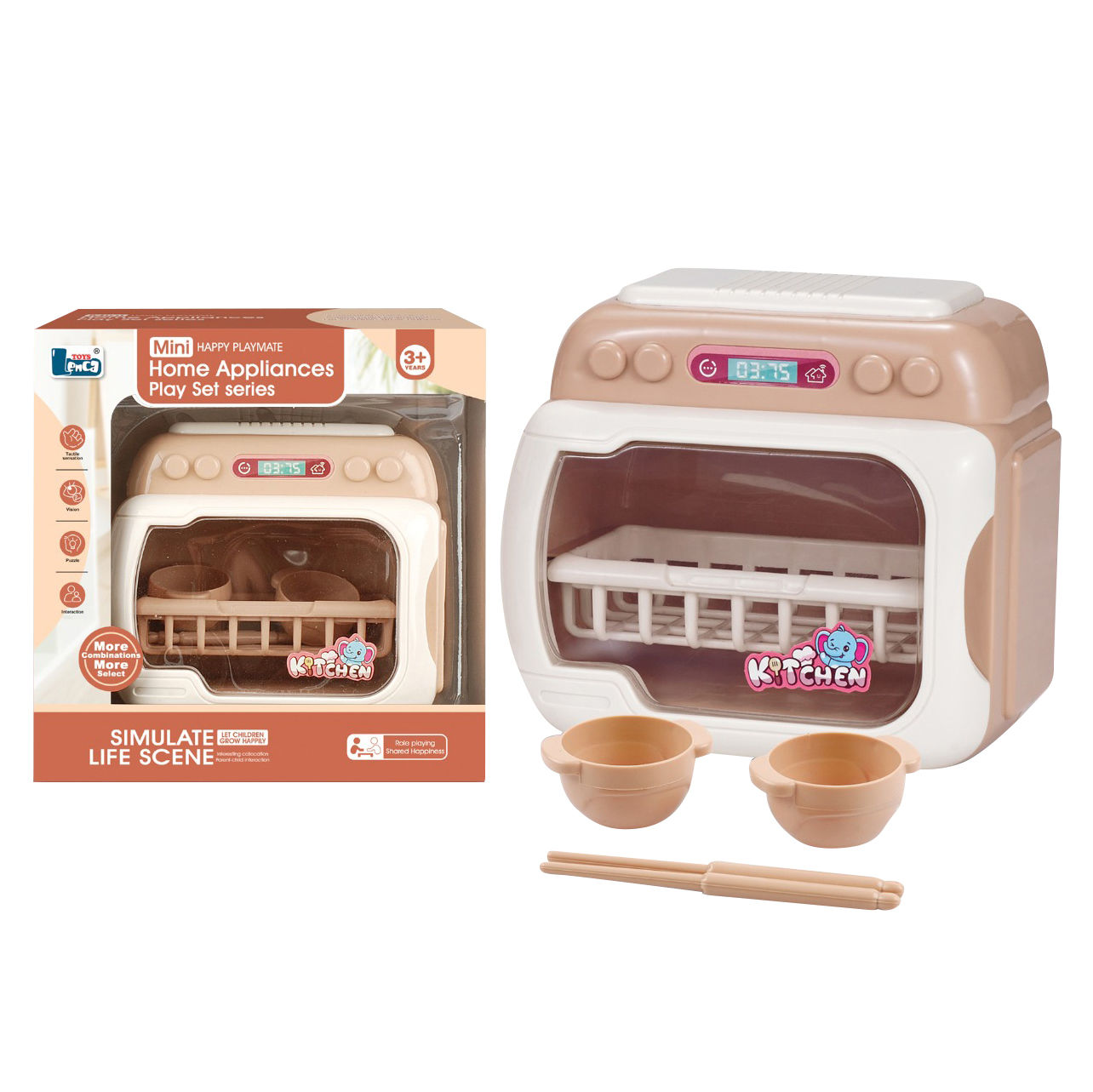 Electrodoméstico, lavavajilla de plástico con accesorios, en caja