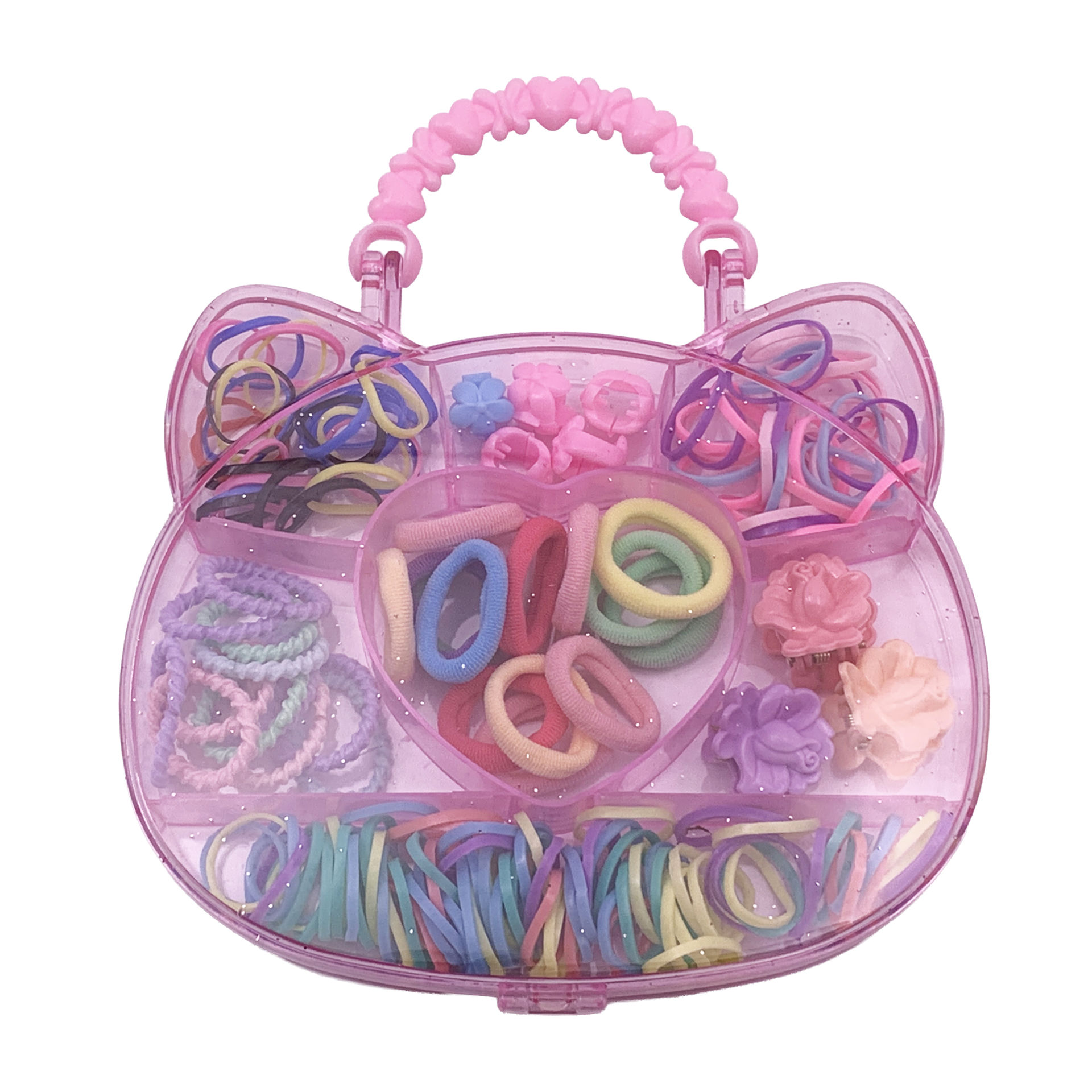 Gomitas para pelo, con pinzas mini, en estuche de plástico
