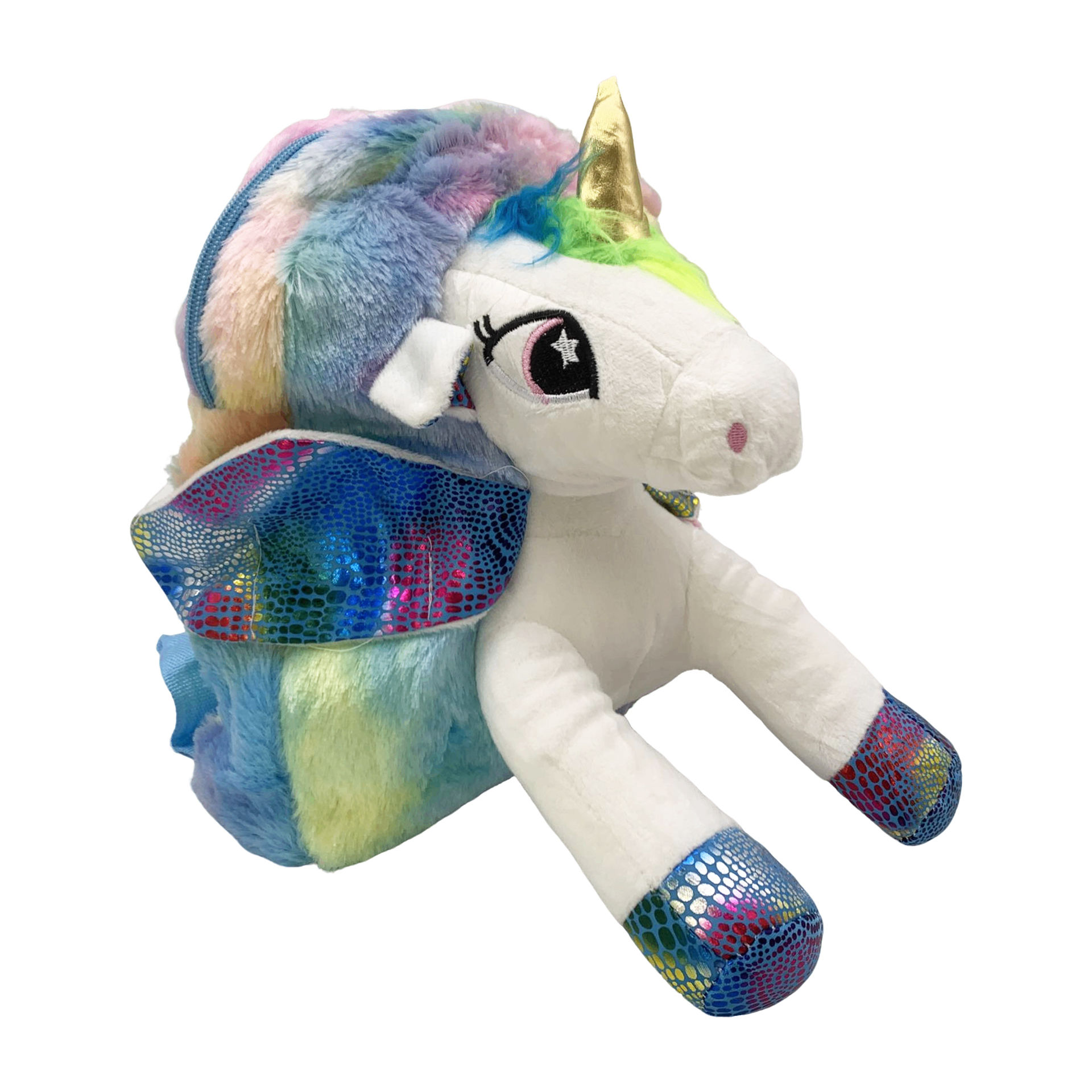 Mochila infantil, tela peluche 1 cierre, con peluche, varios colores