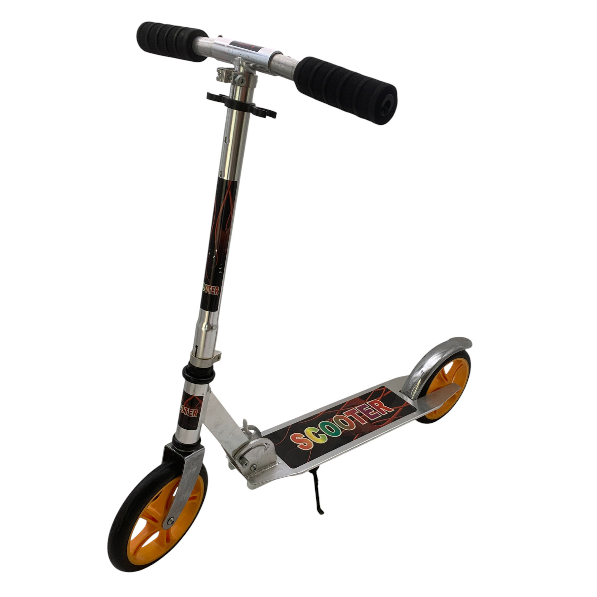 Monopatín de metal, plegable con diseño, en caja