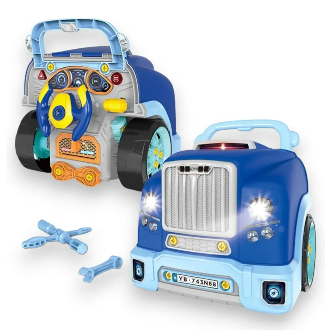 - Diseño tipo camión con volante funcional, luces reales y sonidos de arranque, bocina y motor