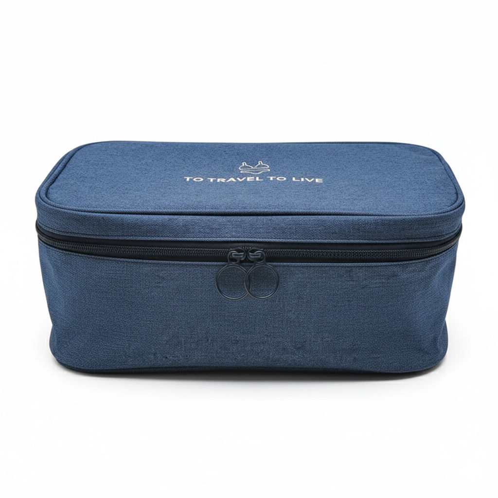 Neceser para viaje de tela con cierre, varias reparticiones, Berlina Travel AZUL