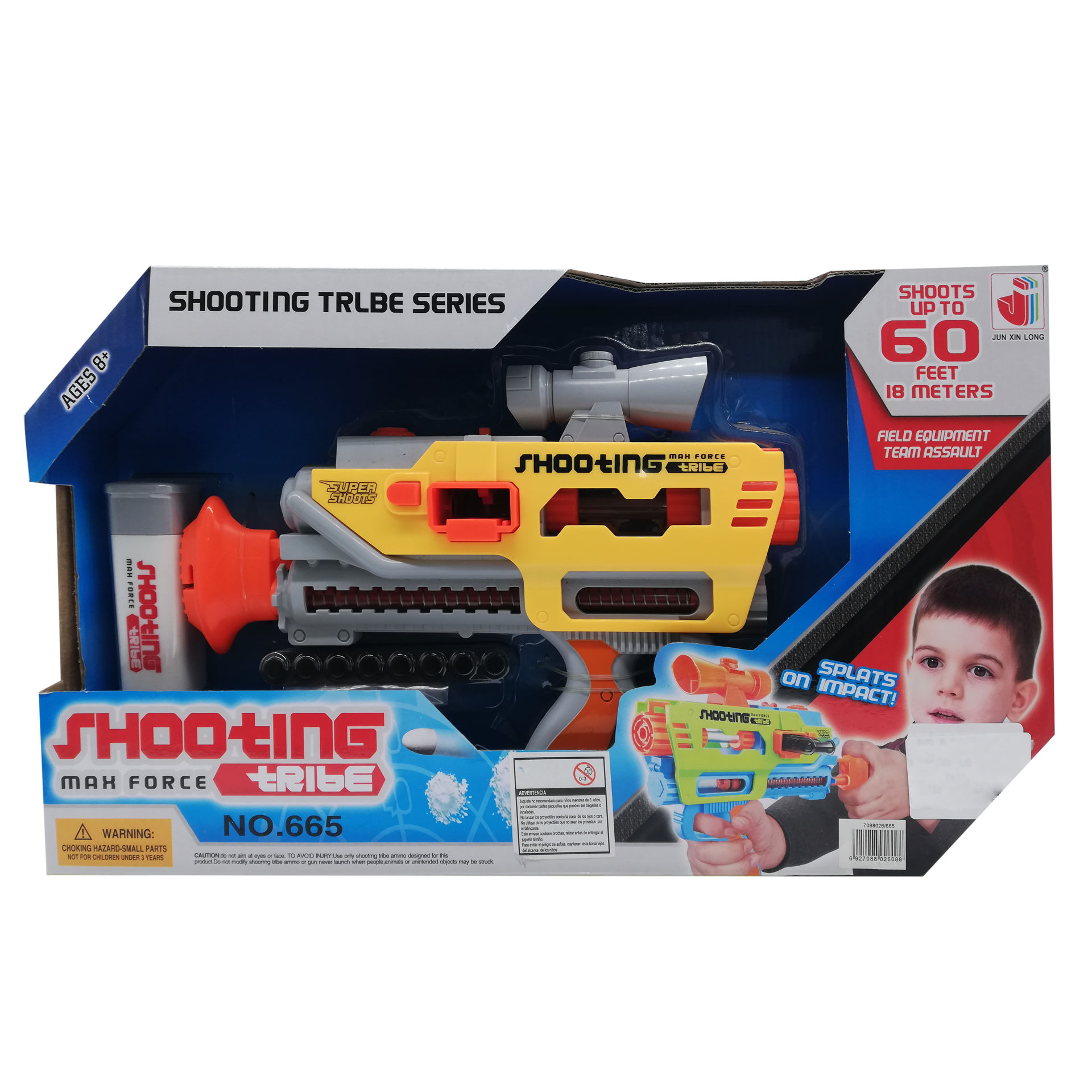 La pistola dispara balines de papel hasta 18 metros y está diseñado para que sea seguro.