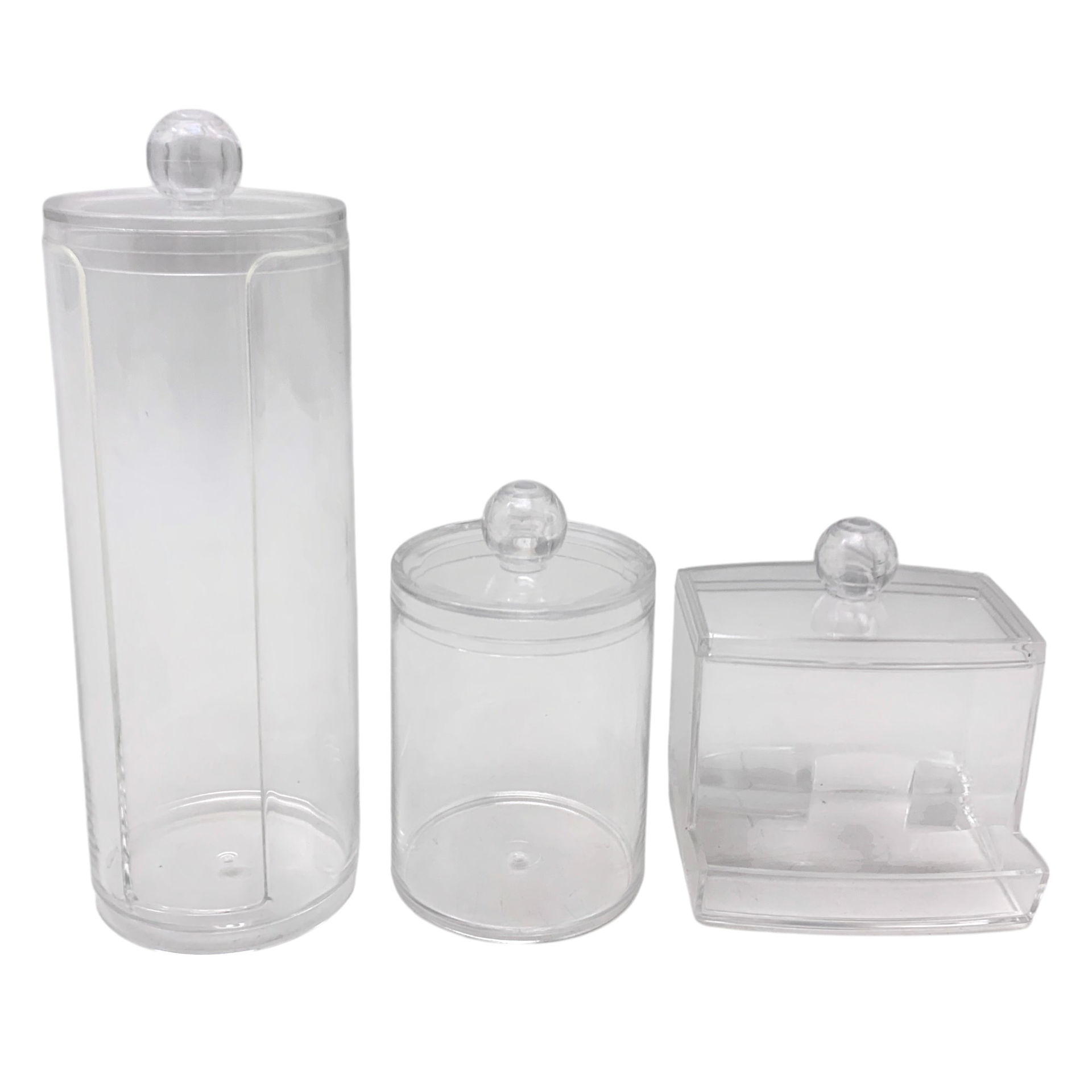 Porta discos de algodón, dispensador de hisopos y frasco con tapa, de acrílico, en caja