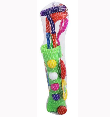 - Contiene 3 palos, pelotas, banderines y ollos.